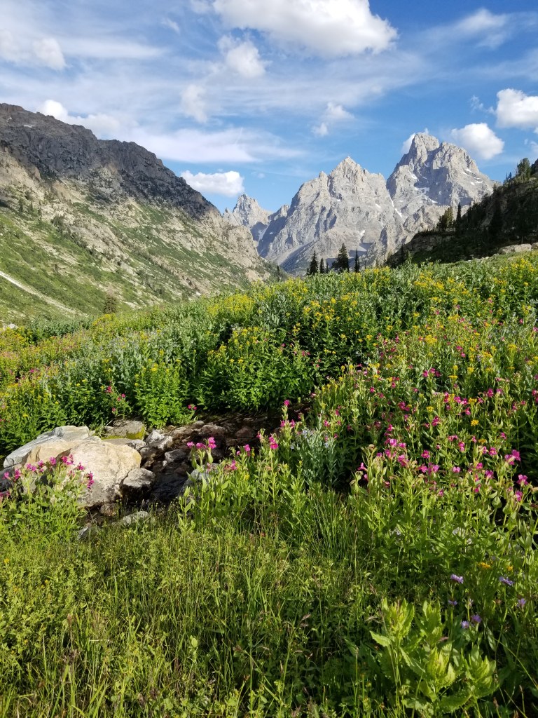 It was at this point that I started realizing that each day this trail had brought something new and even more beautiful than the previous. Day One we we were just excited to be on the trail and got a taste of the wildflowers and alpine lakes. Day Two we were able to experience the vastness of the canyons and truly experience the abundance of brightly colored wildflowers. And finally, on Day Three we were awestruck by the presence of the Tetons.