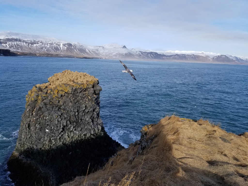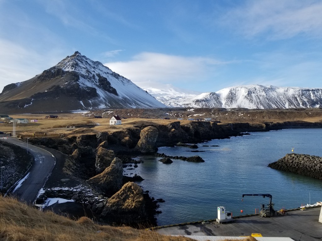 Day 3 was marked by a tour of the Snaefellsnes Peninsula. This was a smaller tour group and it was led by our favorite tour guide. She was a very friendly, Icelandic native that was extremely knowledgeable about the land and culture and you could tell she wanted to share that knowledge with people. We made several stops throughout the day, including to Kirkjufellsfoss, the location of Games of Thrones filming. For lunch, we stopped at a grocery store in a small coastal town and my mom was able to try skir, Icelandic yogurt, for the first time. And finally, the tour continued with stops at a crater (Saxholl), lighthouse (Londrangar), black sand beach (Djupalonssandur) and concluded at another small town that’s home to the Badar Sagar statue, the mythical protector of Snaefellsnes.