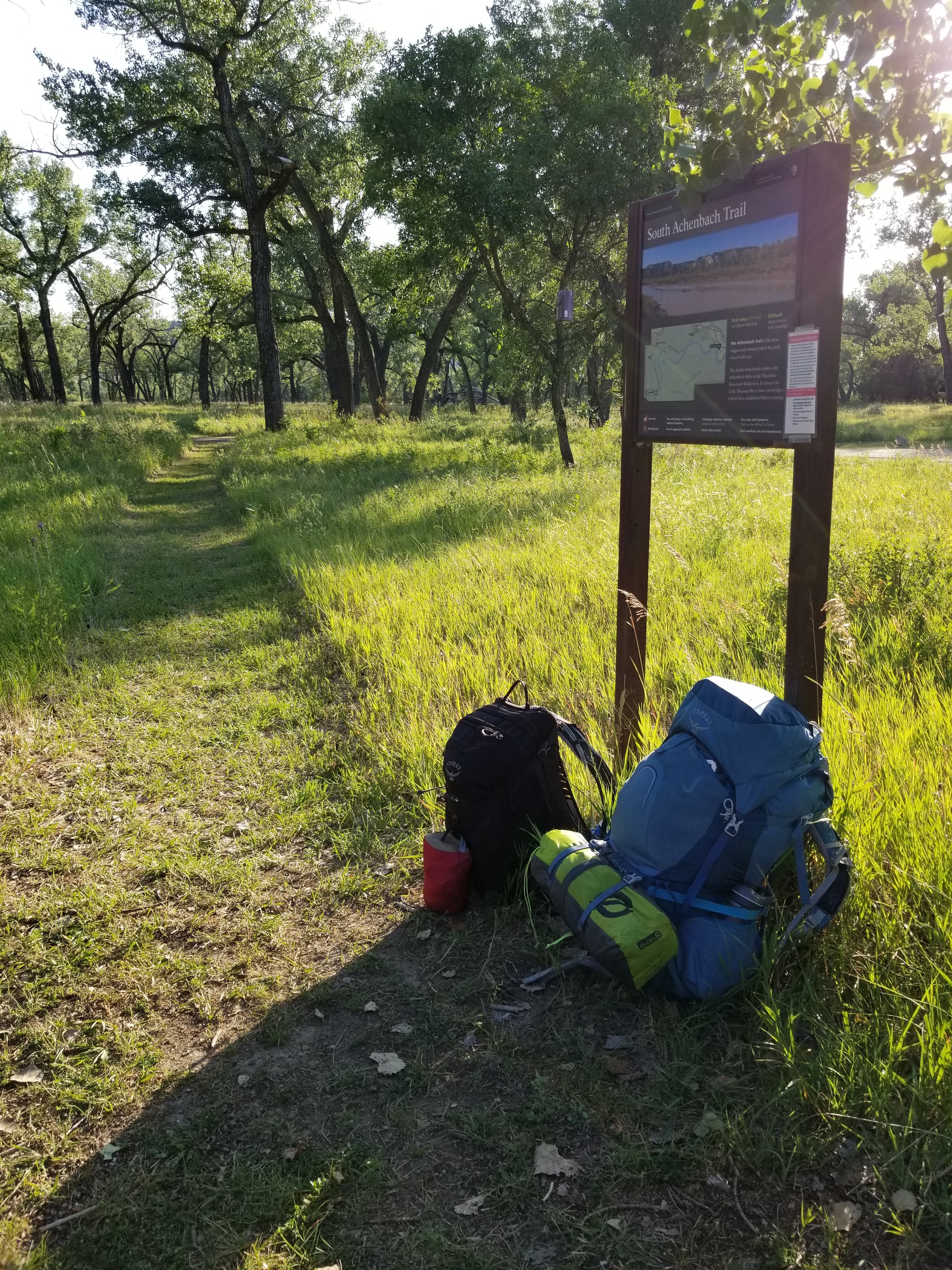 Just a quarter-mile into the trail, we had our first river crossing. On the other side of the river there was… no trail. Fortunately, the Little Missouri River marks the edge of the Central and Mountain time zones, so while it was already getting close to 8pm, we still had plenty of daylight to figure out where to go.
