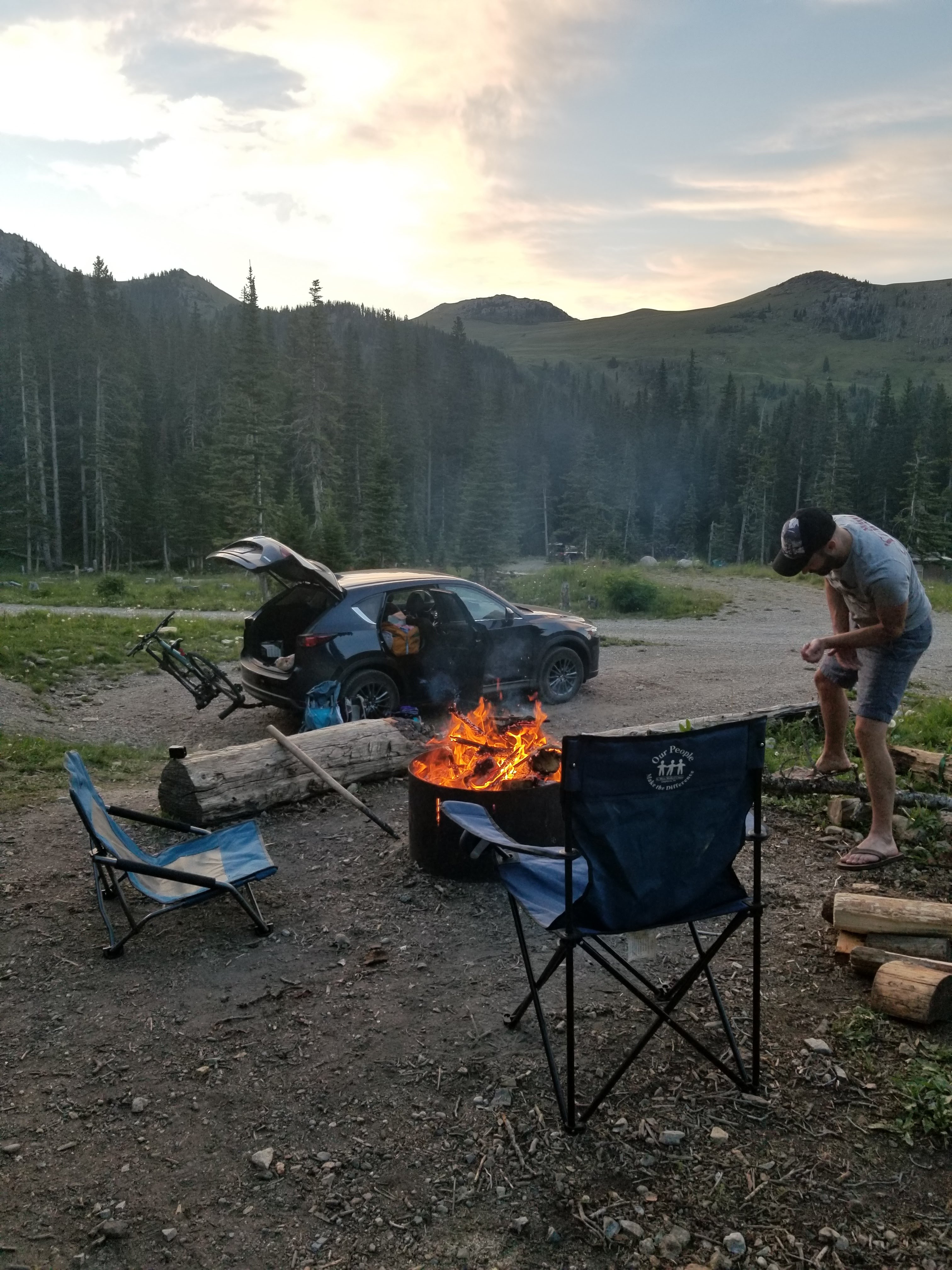 I had found a small, primitive campground located at an elevation of 7,500 feet at the base of Sacagawea Peak. It was a first-come, first-served campground, and we didn’t arrive at the base of the mountain until mid-afternoon. As we began driving the 7-mile ascent on the gnarliest dirt road, I began to get nervous that we were too late and started sorting through backup options in my head.
