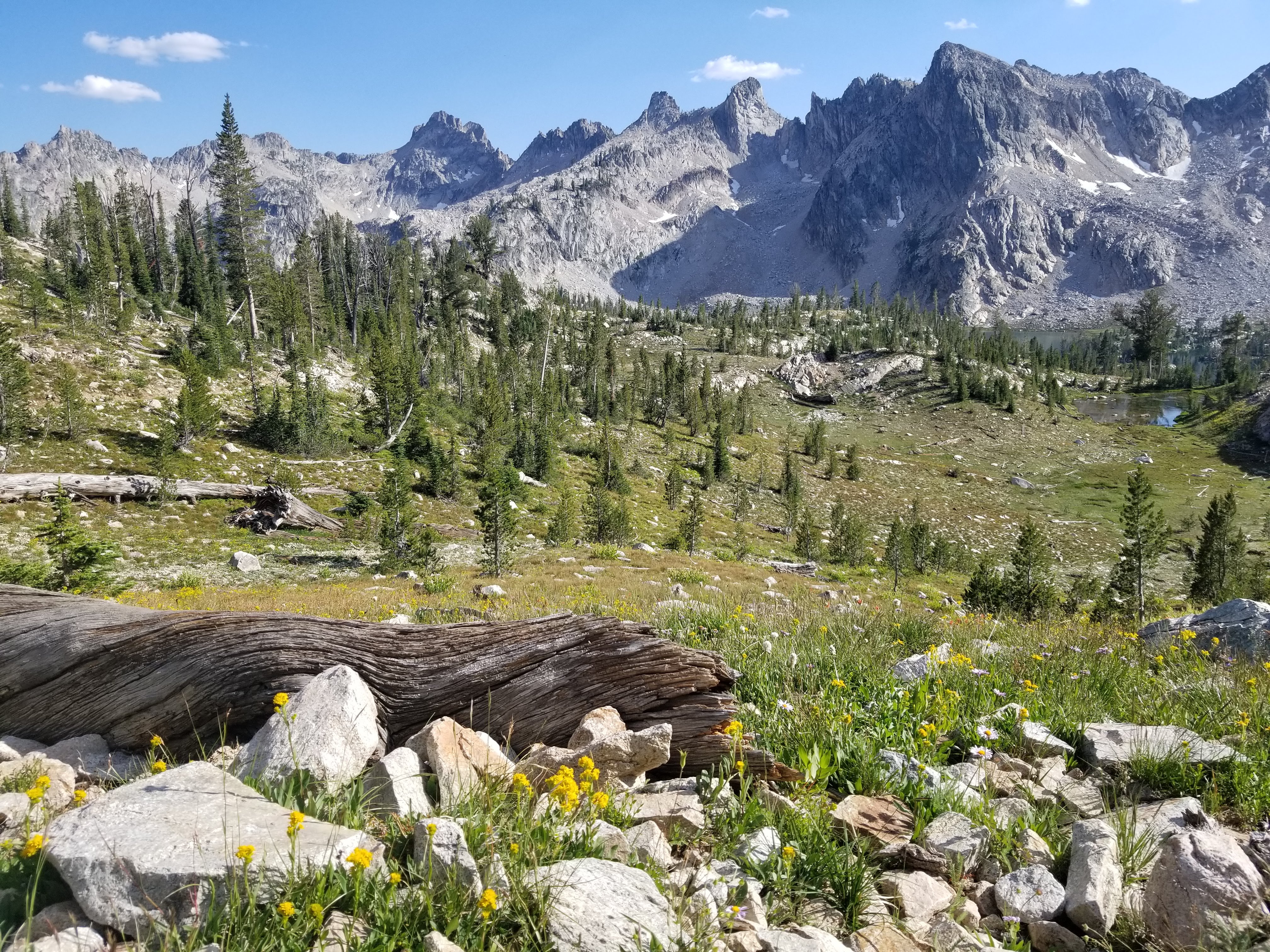The hike was filled with wildflowers, jagged rock faces and even snow. We emerged above the tree line about a mile in and had awesome views of the nearby mountains and valleys.
