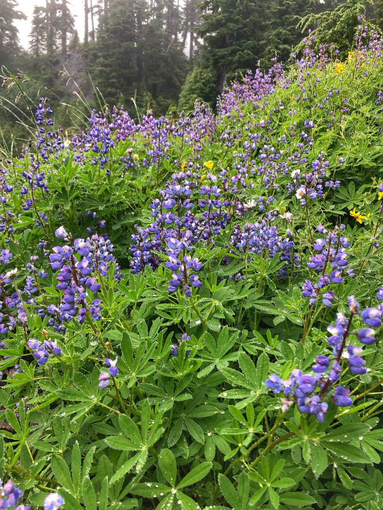 The next morning, we went up to Hurricane Ridge, an area that’s now closed in 2023 due to the lodge burning down. We completed an 8 mile loop that brought us to Grand Lake and had stunning views in the valley the entire time. Once again, the windflowers were bright and we were surprised to have the trail mostly to ourselves! This is also the trail that earned me the nickname “Cinnamon Bear” as a women came around a bend and mistook my hair for a bear.