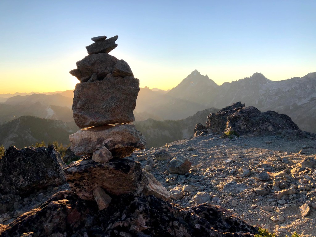 We got an early start the next morning. We had a 6.5 miles and 4,000 feet of elevation to complete with temperatures expecting to get to 90 degrees. The hike started slow, as this was Graham’s first backpacking trip and he made it known that he was not having a good time. Cora and I spent most of the time in the front, often stopping in the shade waiting for others to catch up. Fortunately, we were able to drop our packs around the 5 mile mark at our campsite and continue to the top with just daypacks. We setup camp, rested for an hour or so, and then continued to the top just in time for sunset. The summit was breathtakingly gorgeous, with views of the Enchantments. We were all in awe while Graham pouted saying it wasn’t worth it. At dusk, we made our way back to camp just in time to make some dehydrated meals, do a whiskey shot and head to bed exhausted from the hike and the heat.