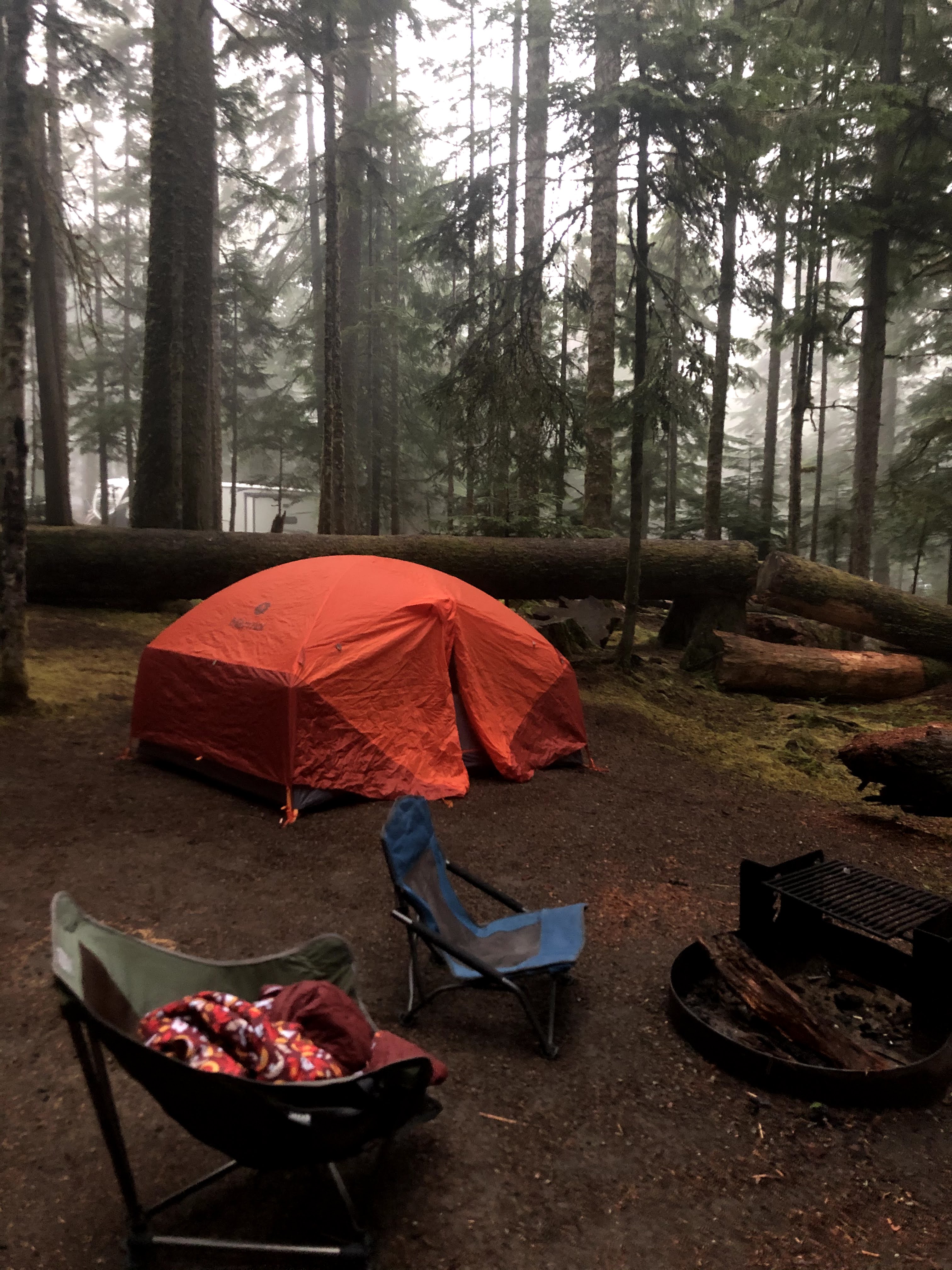 A couple weeks later, Kristen and I decided to camp in Olympic National Park. On the 3 hour drive to the park we realized we forgot to pack the grill so we stopped at a Lowe’s and bought a grill, which we didn’t realize until we arrived at the campsite, the grill required assembly. I ran back out to buy a screwdriver, but by the time I got back to camp Kristen had started a fire a we decided to cook on the fire. It was raining that night, so we spent most of the night in the tent drifting off to Taylor Swift.