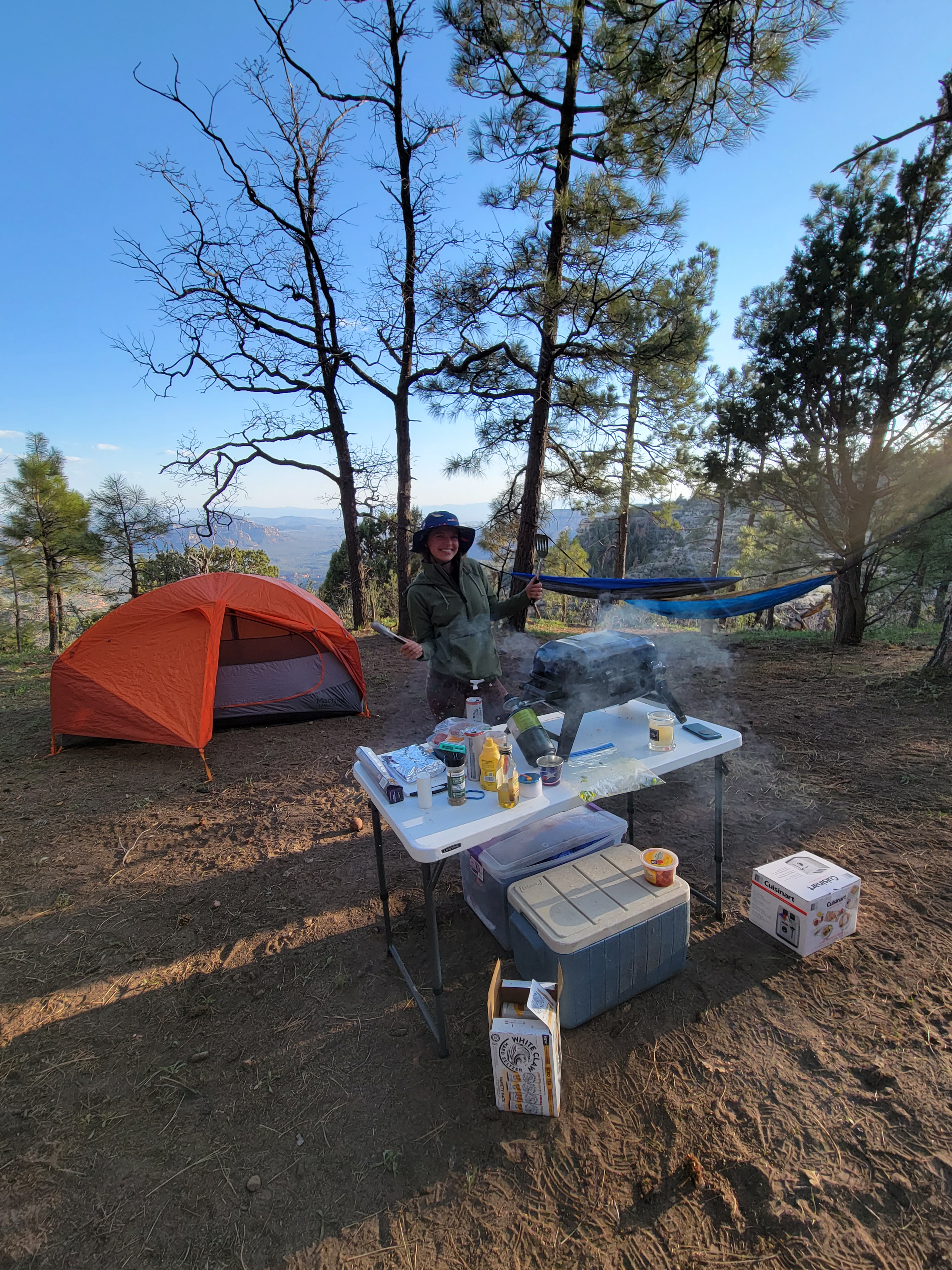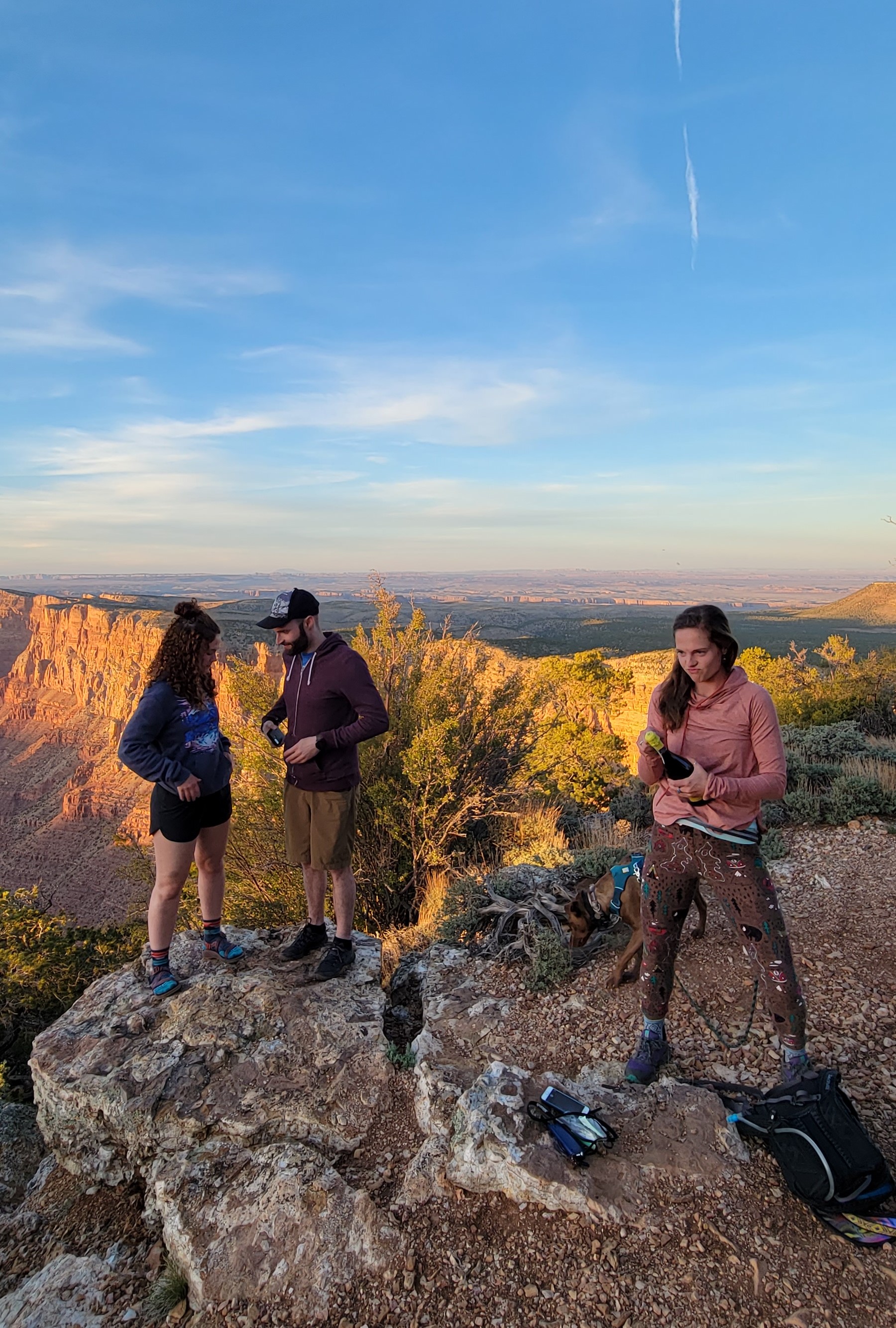At sunset, the four of us walked over to the rim and took in the views. We found a secluded spot and had a champagne photoshoot. On the walk back, Kristen and Michael scoured the area for firewood while Dale and I started on dinner. It was a relaxing night.
