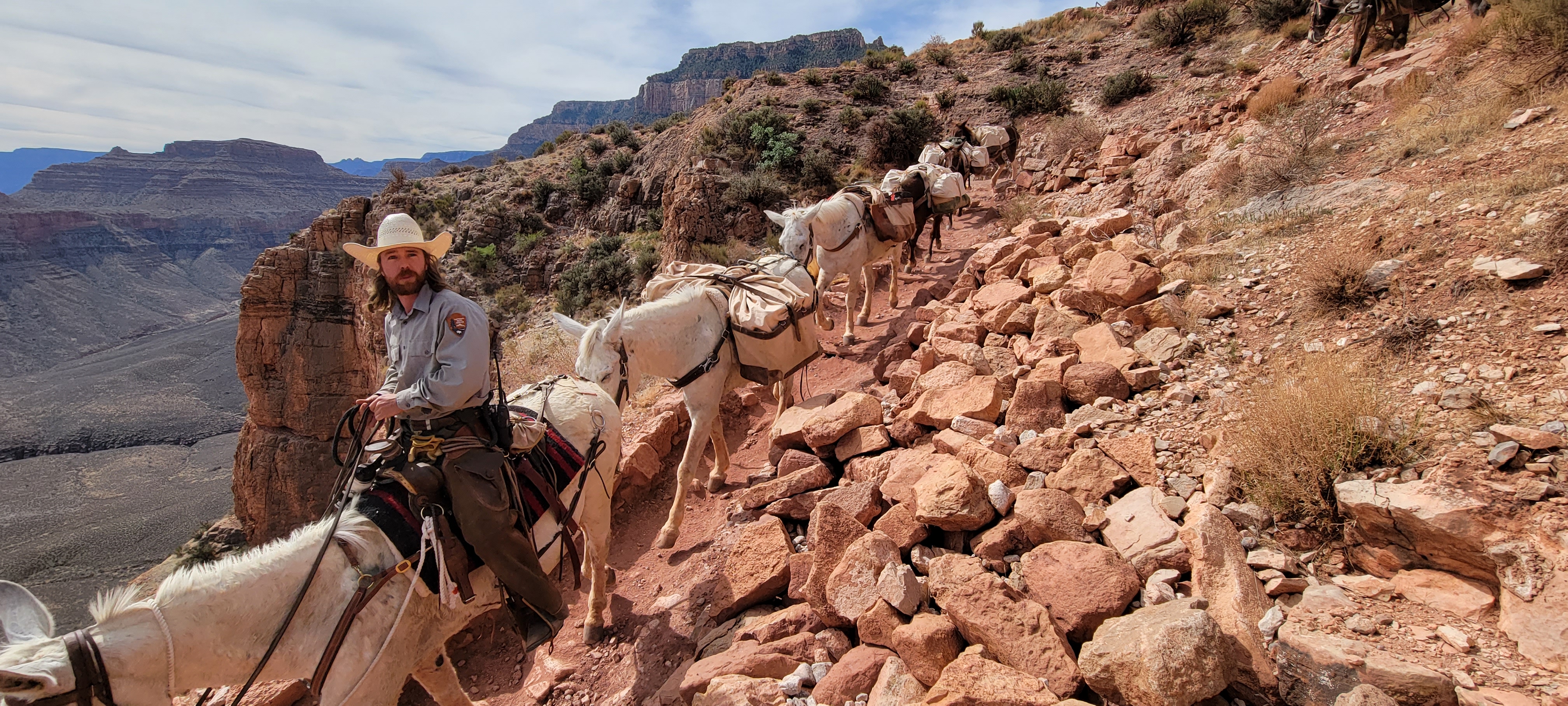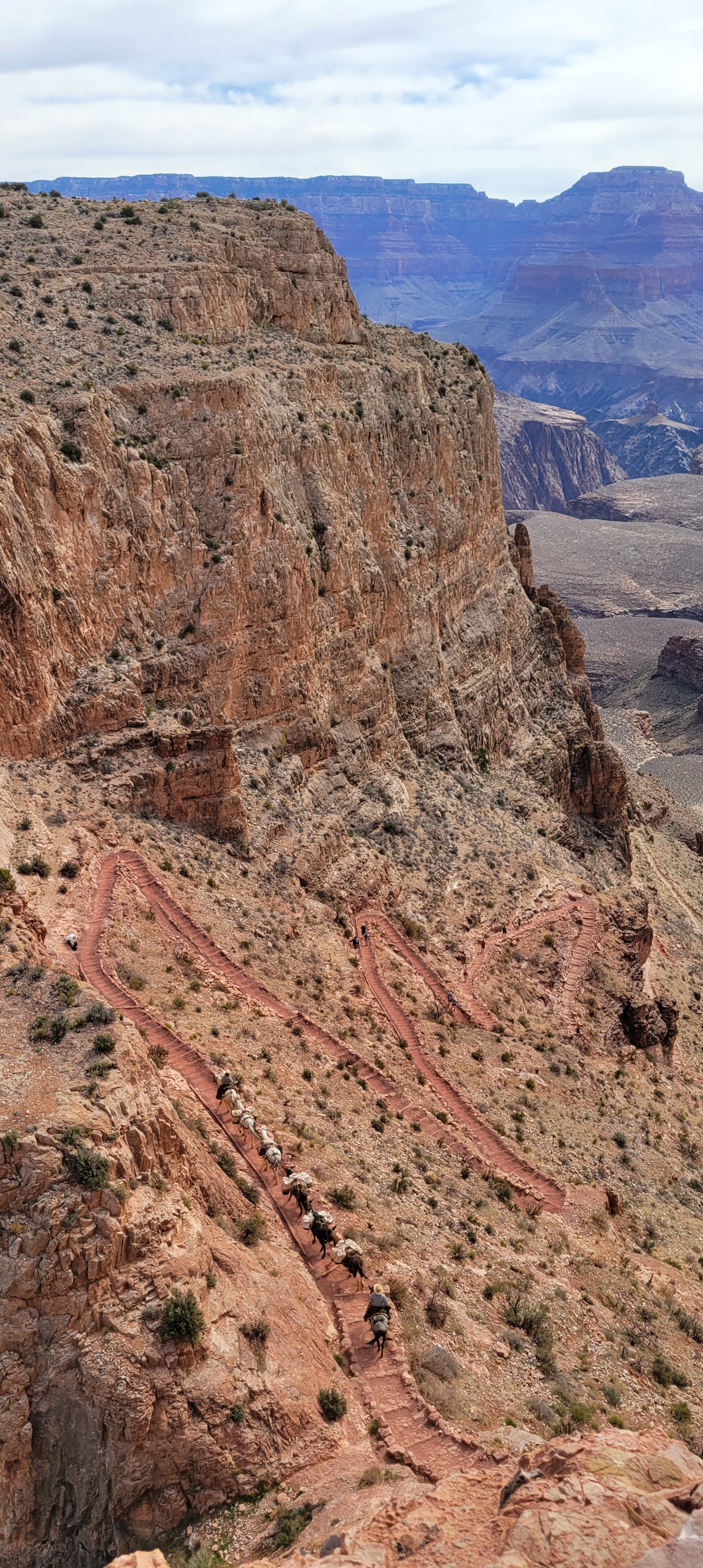 This time, Dale and I were a little less ambitious. We went about 3 miles down before it started getting pretty hot and we decided to turn back. The highlight was seeing a pack of mules being led down to the lodge below.
