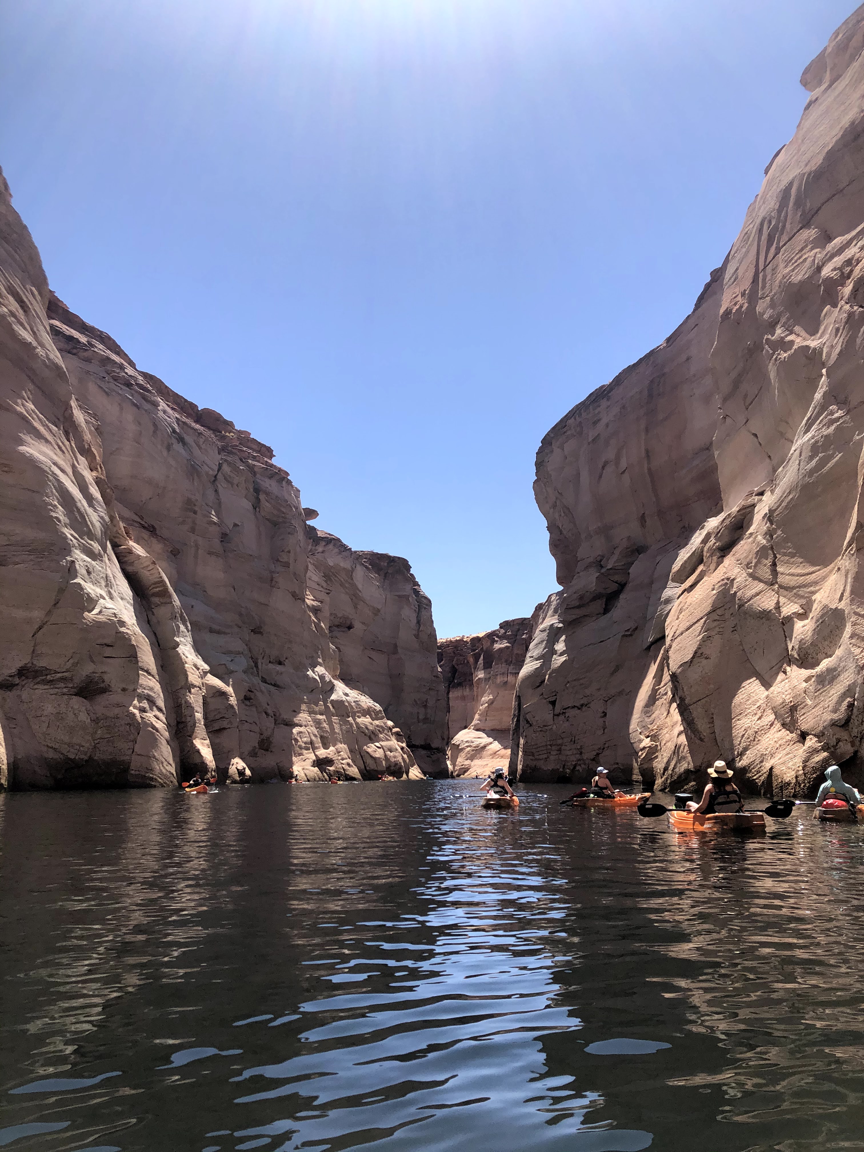 The next weekend we drove north to Lake Powell. We met a group of Kristen’s friends there and rented kayaks. Antelope Canyon is typically accessed by land, but in order to get into it you have to sign up for a guided tour. Alternatively, you can kayak to the backend of it and walk in. It’s not as “slotty” at this part, but it’s worth it to get away from the crowds and go at your own pace.